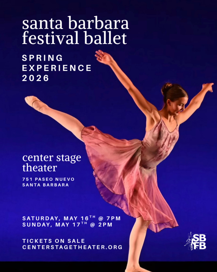 Santa Barbara Festival Ballet presents our Spring Experience 2026! Join us at Center Stage Theater Saturday May 16th (7:00pm) and Sunday May 17th (2pm).